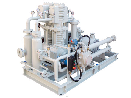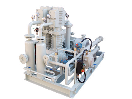 氫氣壓縮機(jī)是我公司新型產(chǎn)品,它集壓縮機(jī)、氣液分離器、安全閥冷卻器、電動(dòng)機(jī)等為一體,組成完整的機(jī)組。具有功能多、體積小、重量輕、功率小、運(yùn)行平穩(wěn)可靠等特點(diǎn),并有良好的安全性能。它為輸送氫氣,可為用戶最大限度地創(chuàng)造經(jīng)濟(jì)效益。由于采用獨(dú)特的無油潤(rùn)滑設(shè)計(jì),氣缸內(nèi)無需用油潤(rùn)滑,因而不會(huì)對(duì)介質(zhì)造成污染,使被輸送介質(zhì)保持純凈。本機(jī)設(shè)計(jì)成機(jī)組型式,許多管線上的附件都安裝在機(jī)組上,省去了穩(wěn)壓罐等,減小了機(jī)房的面積,減少了操作維護(hù)工作量,節(jié)省了投資。